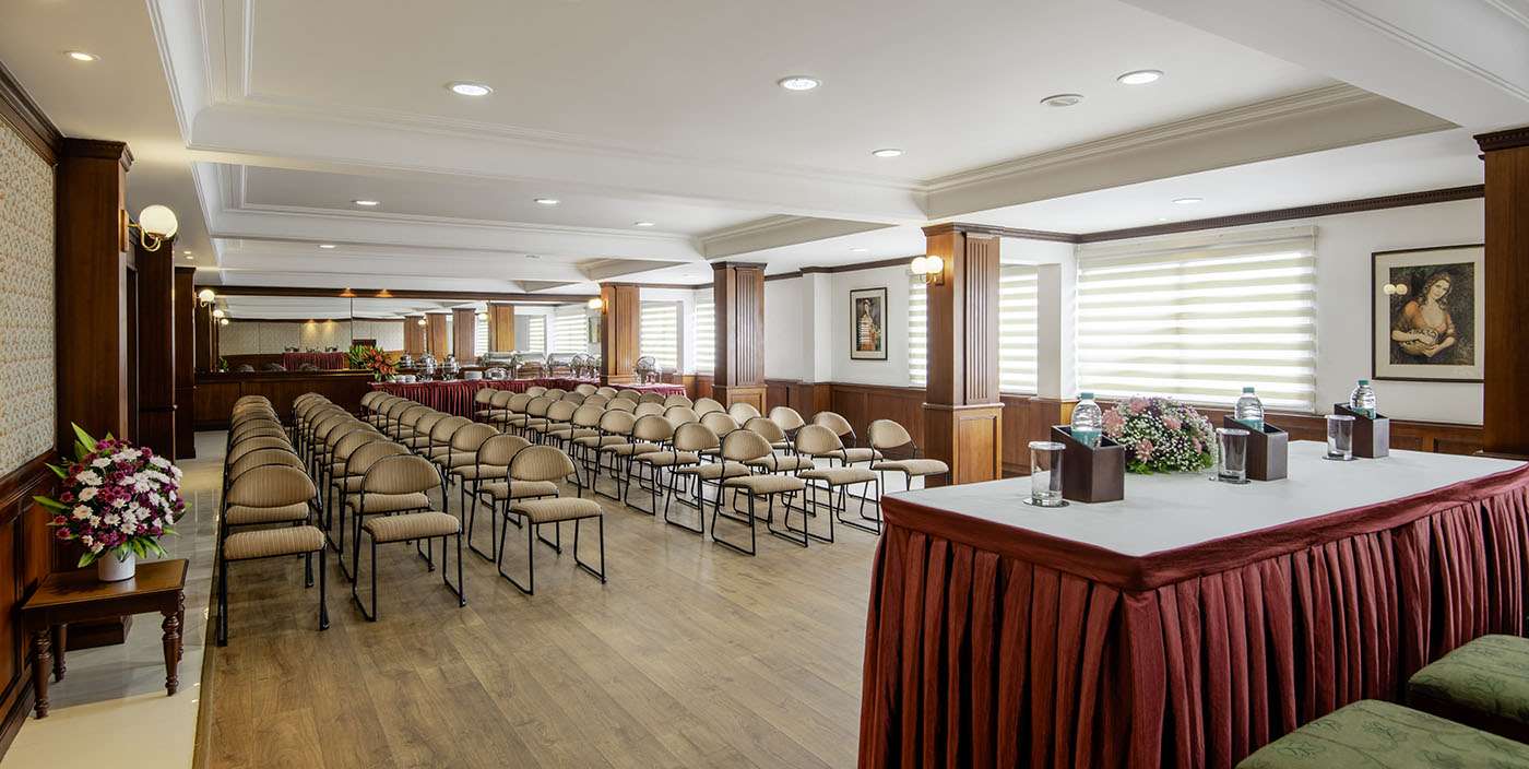 The banquet hall at Issacs Residency Hotel, Munnar is a spacious and versatile venue, ideal for conferences, celebrations, and corporate gatherings. Elegantly designed with a refined ambiance, the hall opens up to breath-taking views of Munnar’s lush hills and mist-covered landscapes, creating an inspiring backdrop for every event. It comfortably accommodates up to 100 guests in theatre-style seating and 50 guests in a U-shaped arrangement. Equipped with modern facilities and supported by attentive service, the hall ensures seamless events while blending functionality with the serene charm of nature.